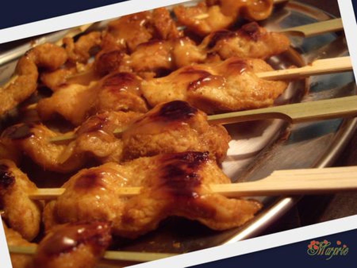 Yakitori de poulet teriyaki au curry piquant votez maintenant PrécédentSuivant Platfacile15 min172 Kcal Envoyer cette recette à un ami Imprimer cette page Poser une question à l'auteur Publier votre photo de cette recette Ingrédients 2 1 blanc de poulet 1 cuillère à soupe de pâte de curry jaune 1/2 cuillère à café de piment fort en poudre sel aux épices orientales 1/2 oignon 3 cuillères à soupe de sauce soja sucrée 1 cuillère à soupe de vinaigre de riz 1 cuillère à soupe de cassonade Sauce à yakitori: 3 cuillères à soupe de sauce soja sucré 3 cuillères à soupe de vinaigre de riz 1 cuillère à soupe de cassonade 1 cuillère à café de maïzena Coût estimé: 2.53Euros€ (1.27€/part)