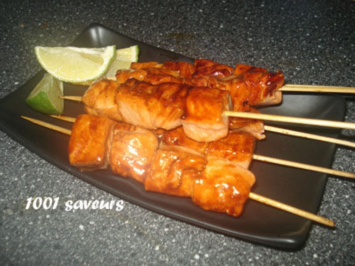 Yakitori japonais au saumon Platfacile20 min252 Kcal Envoyer cette recette à un ami Imprimer cette page Poser une question à l'auteur Publier votre photo de cette recette Ingrédients 4 500 g de pavé de saumon frais sans la peau 2 cuillères à soupe de sauce de poisson (type nuoc man) 3 cuillères à soupe de jus de citron vert 3 cuillères à soupe de sauce soja 2 cuillères à café de sucre roux Coût estimé: 10.8Euros€ (2.7€/part)