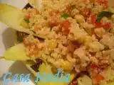 Ingrédients: 200 g de semoule (+ selon la taille des bols servant de moule) 1 l d'eau 250 g d'épinards 1 oignon une bonne poignée de pois chiche vinaigre de...