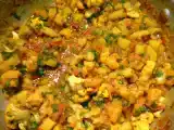 Ingrédients: 400 g de pommes de terre (Charlotte ou Pompadour) 600 g de potiron 1 oignon 1 gousse d'ail 1 tomate 2 cuillères à soupe de raisins secs 15 cl de...