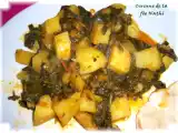 Ingrédients: 4 pommes de terre 300 g d'épinards (frais ou surgelés) 1 tomate 1 oignon émincé 1 à 2 cuillères à soupe de pâte de curry 1 pincée de gingembre en...