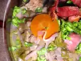 Ingrédients: huile d'olive vos restes de la veille de votre pot au feu : viande et carottes 2 à 3 courgettes quelques tomates 1 oignon 1 cuillère de moutarde à...