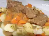 Ingrédients: 1 kg de joues de boeuf (2 belles) 500 g de pommes de terre 500 g de carottes 1 petit morceau de céleri boule 2 oignons 1 gousse d'ail Une poignée...