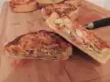 Ingrédients: Pour la pâte brisée au curry : 250 g de farine 125 g de beurre (mou) 1 jaune d'oeuf 1 pincée de sel curry (à votre goût) eau Pour l'appareil à...