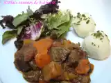 Ingrédients: 1,25 kg de viande de boeuf à ragoût ou à daube (collier, épaule...) 8 à 12 carottes 4 gros oignons 4 gousses d'ail 4 c. à soupe de farine 250 ml de...