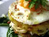 Ingrédients: 800 g de pommes de terre 200 g de comté 4 oeufs extra-frais 1 pomme Golden 4 grosses poignées de pousses d'épinards quelques pluches de cerfeuil 1...