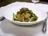 Ingrédients: 450 g de noix de Saint-Jacques 2 blancs de poireaux QS d'huile d'olive 1 oignon tiges de citronnelle gingembre râpé 20 cl de lait de coco safran