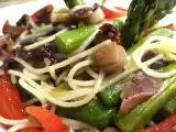 Ingrédients: pâtes : 500 g de semoule de blé dur 5 gros oeufs sauce : 400 g de jambon cuit couper en lanières 250 g de champignons de paris 50 cl de vin blanc 1...