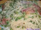 Ingrédients: 500 g d'asperges vertes 3 tranches de jambon Serrano (en retirant le gras autour) environ 256 g de riz arborio ou à défaut un riz rond 1 grosse...