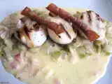 Ingrédients: noix de saint Jacques jambon de Bayonne en chiffonnade bouquet de basilic lichette de Whisky huile d'olive sel poivre du moulin accompagnement :...