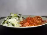 Ingrédients: 2 blancs de poulet coupés en dés 1 oignon 1 cuillère à soupe d'huile d'olive 50 g de bacon 1/2 poivron vert, épépiné et coupé en petits dés 1...
