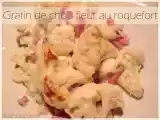 Ingrédients: 1 petit chou fleur 1 rouleau de pâte brisée 20 cl de lait 20 g de beurre 20 g de farine 75 g de Roquefort 1 cuillère à soupe de moutarde 2 oeufs 1...