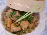 Ingrédients: Pour les brochettes et la marinade : 2 darnes de saumon coupées en gros cubes 3 cuillères à soupe de sauce soja 1 cuillère à café de sucre...