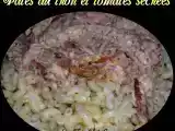 Ingrédients: 500 g de pâtes 2 oignons 1/2 bocal de tomates séchées 1 grosse boîte de thon 40 cL de crème liquide 1 cuillère à soupe de moutarde à l'ancienne...