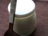 Ingrédients: 3/4 de litre de lait d'amande yaourt au lait végétal 100 g de poudre d'amande 3 cuillères a soupe de sucre 1/2 cuillère a café d'amande amère