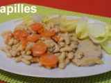 Ingrédients: 300 g d'haricots blancs 5 morceaux de boeuf 1 oignon 25 cl de bouillon de boeuf 5 gousses d'ail 2 échalotes 4 tomates du jardin ou une boite de...