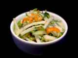 Ingrédients: 1 concombre 200 gr de fromage blanc 8 feuilles de menthe 1/2 gousse d'ail 1 c. à café de jus de citron Sel Poivre