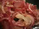 Ingrédients: 1 patate douce 4 tranches de magret de canard séché / personne 150 g de noix 1 cuillères à soupe de beurre 1/2 oignon rouge 1 badiane (ou anis...