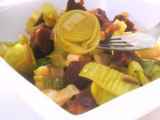 Ingrédients: 4 pommes de terre 150 gr de poireaux 4 tranches de ventrèche de la maison Petricorena 1 oignon émincé 1 Cocagne de la fromagerie Xavier Thym Huile...
