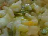 Ingrédients: 2 petits oignons 2 poireaux zeste d'1 citron et jus du citron huile d'olive 300 g de riz "spécial risotto" 25 cl de vin blanc 1 l de bouillon de...