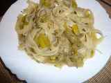 Ingrédients: 500 g de morue en filet 1 kg de poireaux 4 pommes de terre moyennes 1 petite boite de pulpe de tomates sel poivre thym laurier 1 oignon 1 gousses...