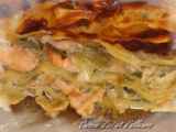Ingrédients: 2 pavés de saumon 150 gr de saumon fumée 20 cl de crème liquide 180 gr de boursin ail fines herbes poireaux (quantité au goût de chacun) 4 oeufs...