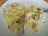 Ingrédients: 500 g de pommes de terre 5 poireaux de taille moyenne 1 oignon 1 cuillerée à soupe d'huile de pépins de raisin 100 g de lardons fumés 1 feuille de...