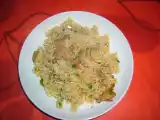 Ingrédients: 250 g de risotto arborio 1 oignon 1 litre de bouillon de volaille 2 saucisse fumées 100 g de petits pois 4 cuillères à soupe de crème fraiche 1...