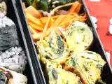 Ingrédients: La fausse omelette soufflée minute : 1 oeuf un peu de sauce soja (de l'huile aromatisée fera l'affaire si vous cherchez une alternative) des algues...