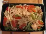 Ingrédients: 4 filets de poulet 1 cuillère à soupe de sauce soja 2 cuillères à soupe de sauce Hoi Sin 1 cuillère à soupe de graines de sésame Les légumes...