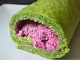 Ingrédients: Pour le biscuit : 60 g de pousses d'épinard 3 oeufs 12 ml d'eau bouillante 15 g de beurre fondu 50 g de maizena 25 g de farine 1 sachet de levure...