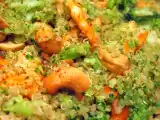 Ingrédients: 200 g de crevettes cuites décortiquées 1 pied de brocolis 1 verre de quinoa 1 filet d'huile de sésame 1 cuillère à soupe de Sukiyaki (sauce soja...