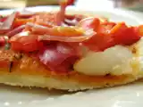 Ingrédients: 8 mini pains à bruschetta 1/2 boite de purée de tomates 4 tranches de jambon de Parme 1 boule de mozarella 1 gousse d'ail Basilic huile d'olive...