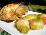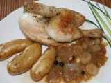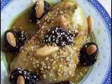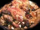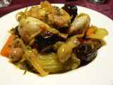 Ingrédients: 2 Coquelets 16 pruneaux 2 oignons 1/2 bouquet de persil plat 4 carottes 3 branches de céleris 2 tomates 12 olives cassés huile d'olive 1/2 c. à...