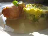 Ingrédients: 4 pommes de terre 150 gr de fromage frais nature 2 tranches de saumon fumé 1 càs de jus de citron 1 càs d'aneth ciselée sel poivre