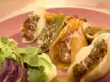 Ingrédients: 8 beaux chicons 500 g de hachis de campagne (préparé par le boucher) Quelques tranches fines de lard fumé 1 bouteille de bière belge d'abbaye...