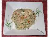 Ingrédients: ½ oignon, 2 courgettes, 30 g de parmesan, 2 oeufs, 10 cl de crème, 12 gambas crues décongelées, 1 échalote, 5 cl de vin blanc sec, 1 cuillère à...