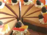 Ingrédients: Pour le génoise: 4 oeufs 125g sucre 100g farine 25g de cacao en poudre non sucré 1 pointe de levure chimique Pour la garniture: 420 g de crème...