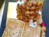 Ingrédients: 4 blancs d'oeufs 120 g de beurre 80 g de sucre glace 80 g de poudre d'amandes 50 g de farine 30 g de cassonade pistaches non salées compote...