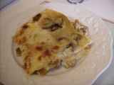 Ingrédients: 8 plaques de lasagnes 1 grande boite de champignons 1 grande boite de ratatouille 1/2 litre de lait 4 cuillères à soupe de maïzena parmesan