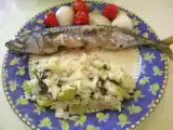 Ingrédients: 4 filets de maquereaux fumés au poivre 2 oignons nouveaux épluchés et émincés 80 g de riz noir 2 cuillères à soupe d'huile d'olive vierge extra 1...