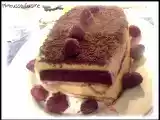 Ingrédients: Pour la mousse au chocolat blanc: 25 cl de crème liquide 2 jaunes d'oeuf 200 g de chocolat blanc 20 cl de lait et 2 feuilles de gélatine Pour la...