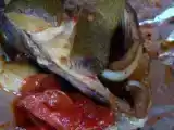 Ingrédients: 1 filet de poisson blanc 1 fraise quelques lamelles de poires quelques quartiers de pamplemousse rose quelques raisins secs 1 cuillère à café de...