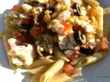 Ingrédients: 180 gr de pâtes (penne rigate) 1 gousse d'ail 1 piment 380 gr de tomates pelées Persil Sel Huile d'olive