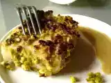 Ingrédients: 1 filet de poisson blanc, 40 g de pistaches natures, 1 oeuf, farine, sel, poivre, huile d'olive, 1 cuillère à café de fumet de poisson déshydraté,...