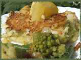 Ingrédients: 4 petites pommes de terre 1 carotte 200 g de poisson blanc chapelure / parmesan un peu de persil / un peu de piment 1/2 verre de lait sel poivre