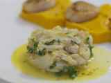 Ingrédients: 1 butternut 6 noix de st jacques 1 pavé de poisson blanc (maigre) 1 demi échalote Un citron Un peu de persil 50 grammes de beurre 4 cuillères à...