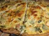 Ingrédients: pâte brisée morceaux de tomates séchées poivrades dés de pancetta oignons nouveaux un peu de vin blanc artichauts petits pois un peu de ricotta 2...