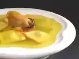 Ingrédients: 270 g de pois cassés 1 paquet de ravioles de Romans 1 carotte 1 oignon huile d'olive laurier thym 2 jaunes d'oeufs 100 g de crème fraîche 2...