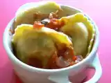Ingrédients: 1 paquet de Raviolis aubergines tomates et mozzarela 1 petite aubergine 1 boite de tomates en dés 1 échalote 1 cuillère à soupe d'huile d'olive 1...
